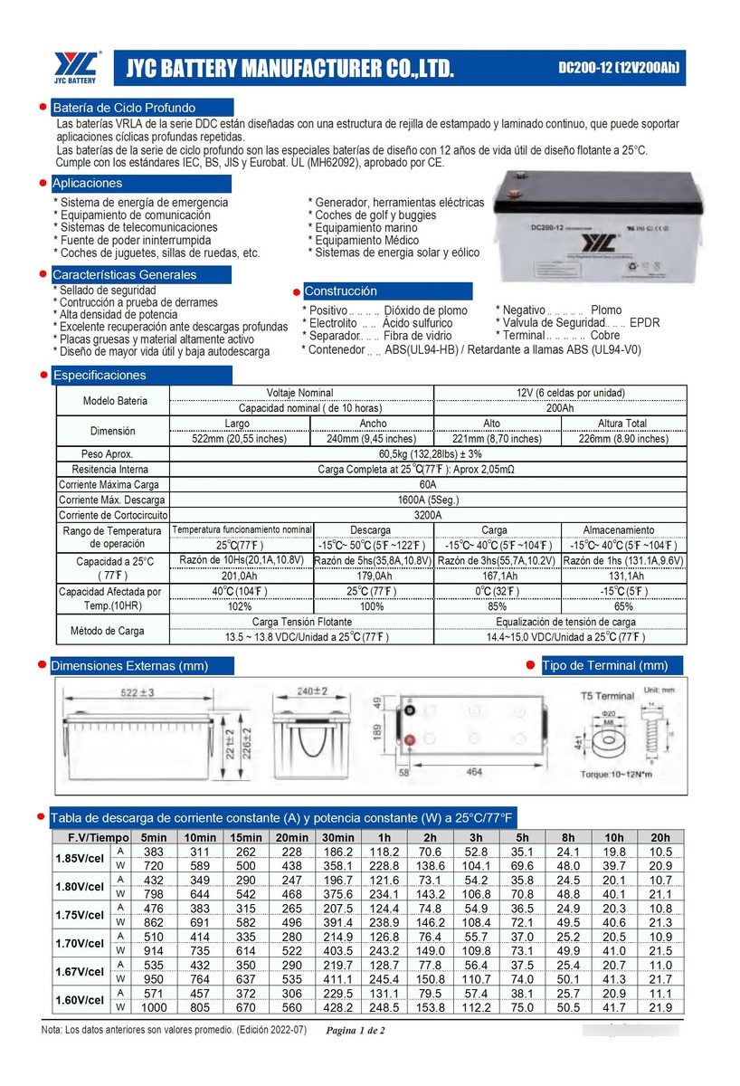 Batería Solar Ciclo Profundo 12v – Jyc Battery – 200ah