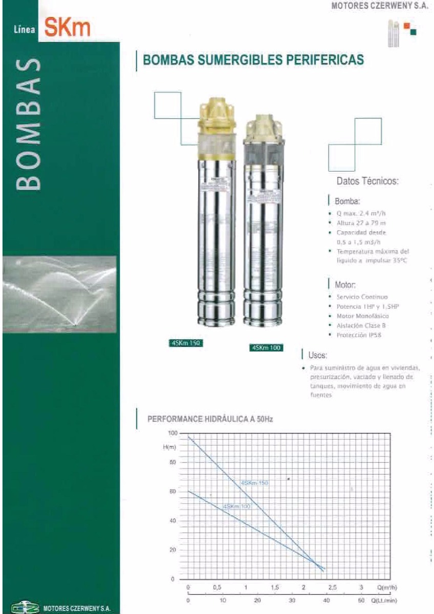 Bomba Agua Sumergible Czerweny 4skm100 1 Hp + 35mts Cable
