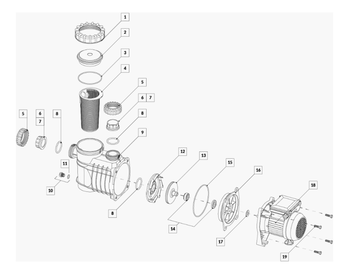 Bomba autocebante para piscina BAE 075 Vulcano. Su diseño confiable la convierte en la elegida por los instaladores.