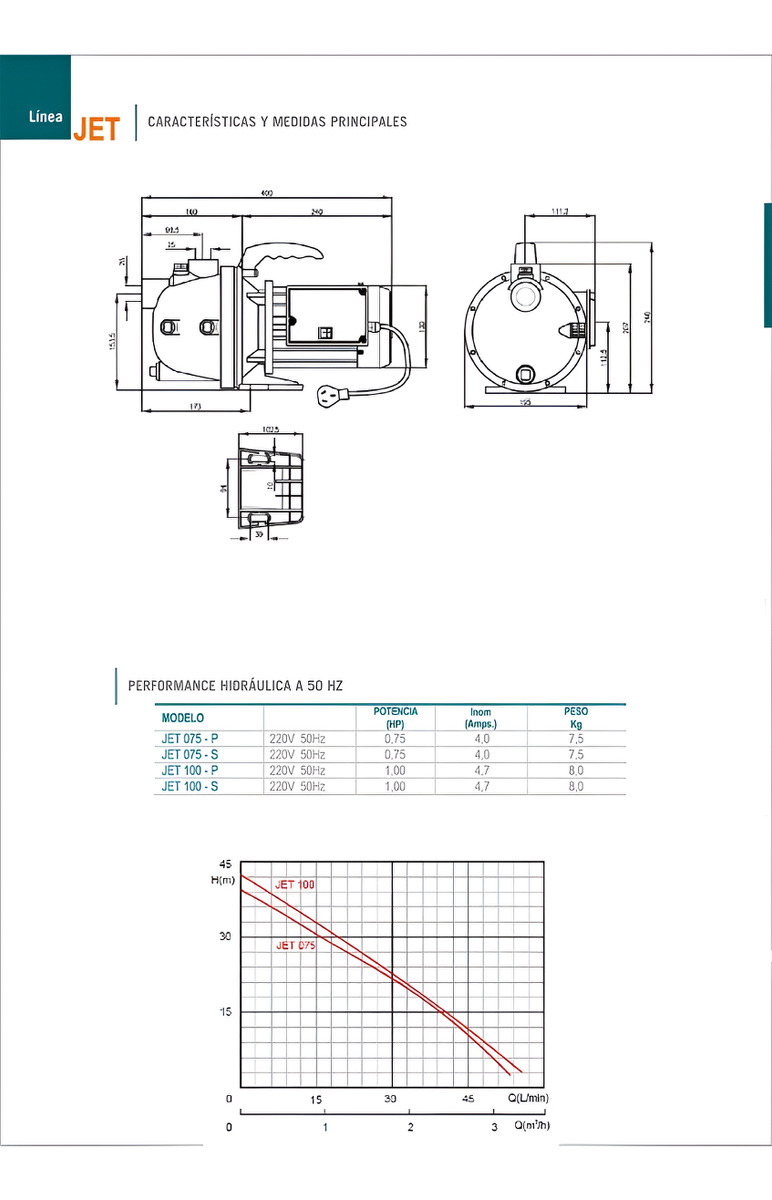 . Caudal máximo entregado: 50 Litros por minutos (3000 Litros por hora) (3.00 m3 por hora)