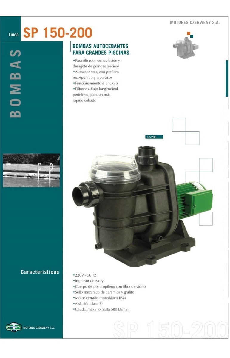 – BOMBA AUTOCEBANTE PARA PILETA CZERWENY MODELO EBA SP-2 2 HP 380v.