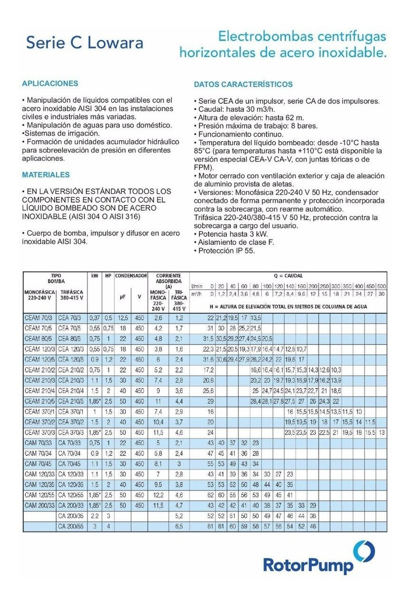 ELECTROBOMBA CENTRÍFUGA HORIZONTAL DE ACERO INOXIDABLE