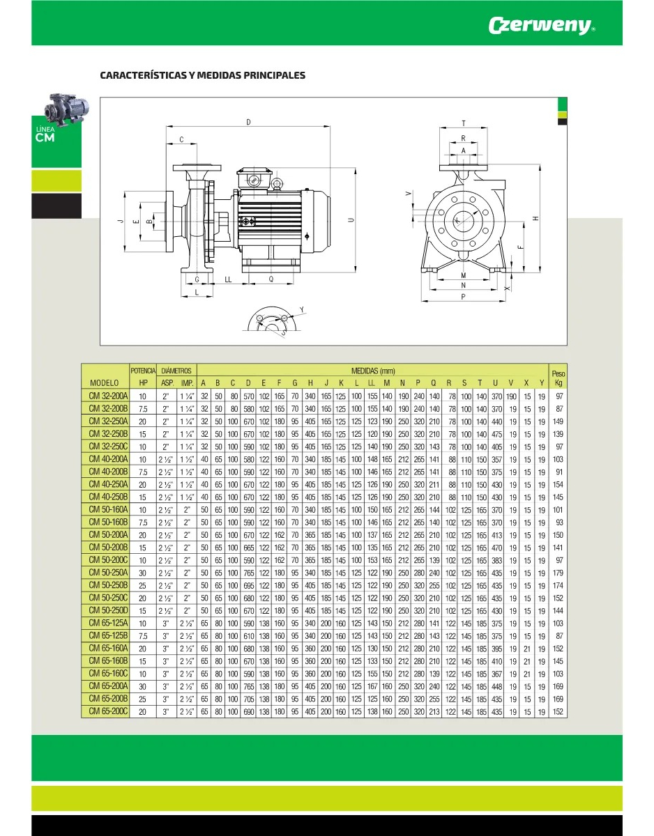 Linea Monoblock Czerweny CM 65-160B 15HP TRIFASICA 380V