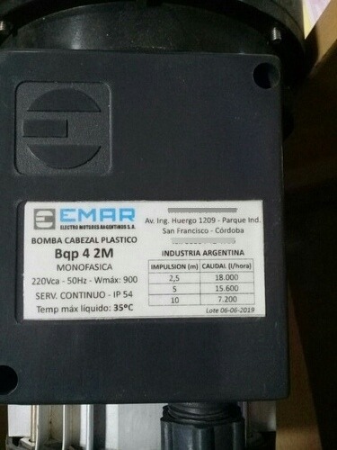 Bomba Centrifuga Monofásica Plástico Emar 3/4 Hp Bqp 2 2m