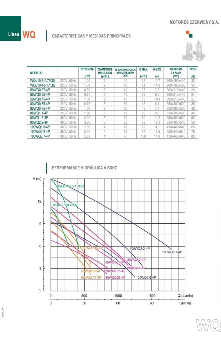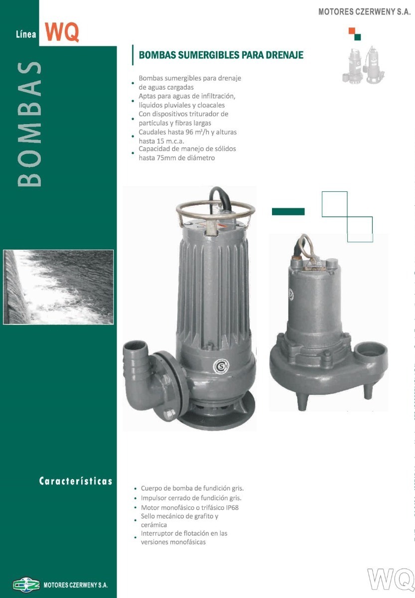 BOMBA SUMERGIBLE CLOACAL MONOFÁSICA CON TURBINA TRITURADORA