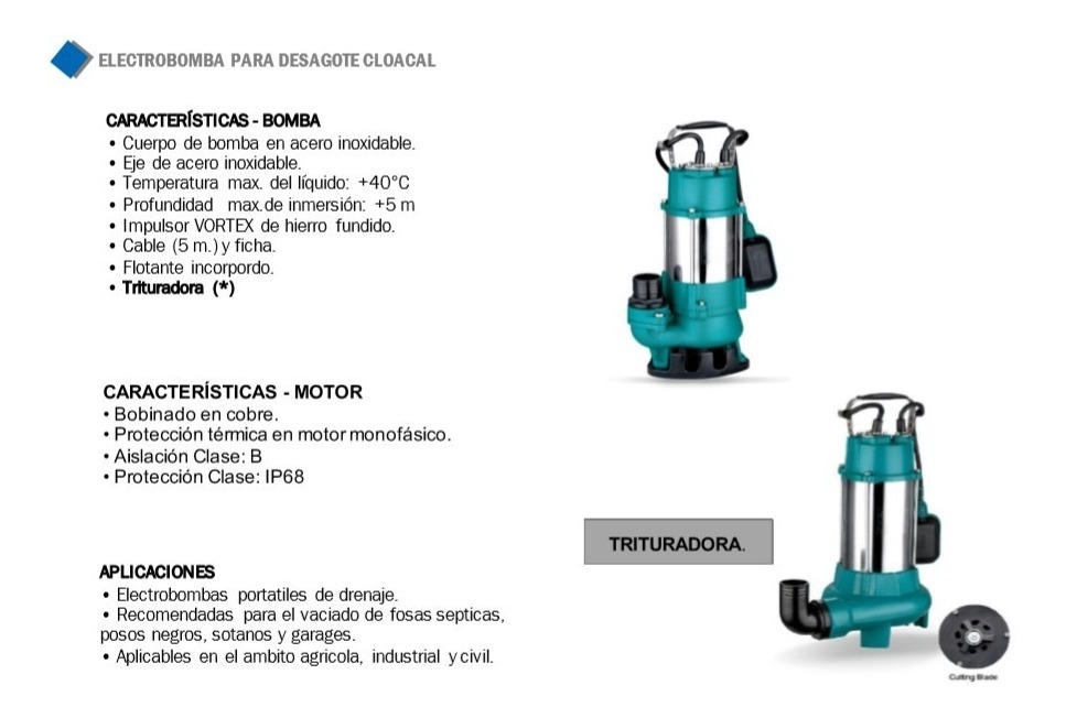 Bomba Cloacal Sumergible Desagote Leo 1,5 Hp 220v Xsp 20/9