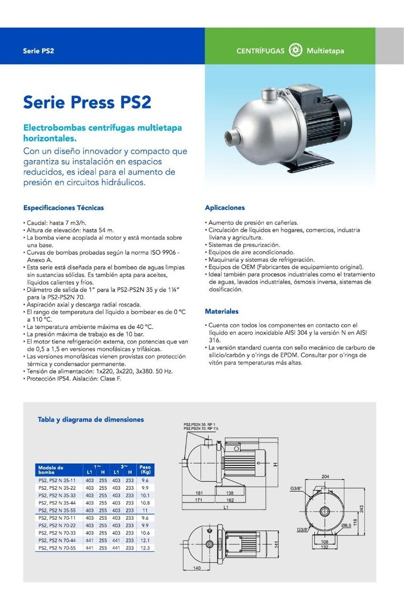 | Tipo de bomba | Centrífuga |