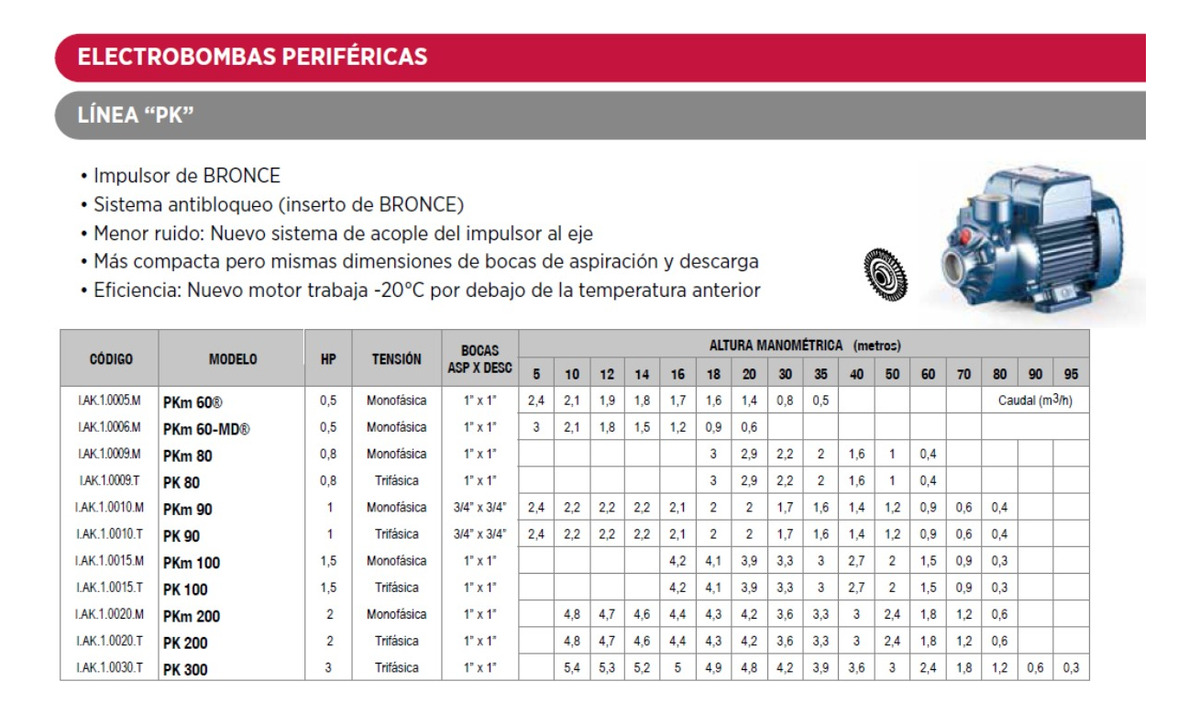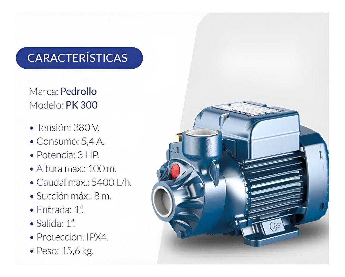 • Caudal máximo entregado: 80 L/min (5400 L/h – 5,4 m3/h).