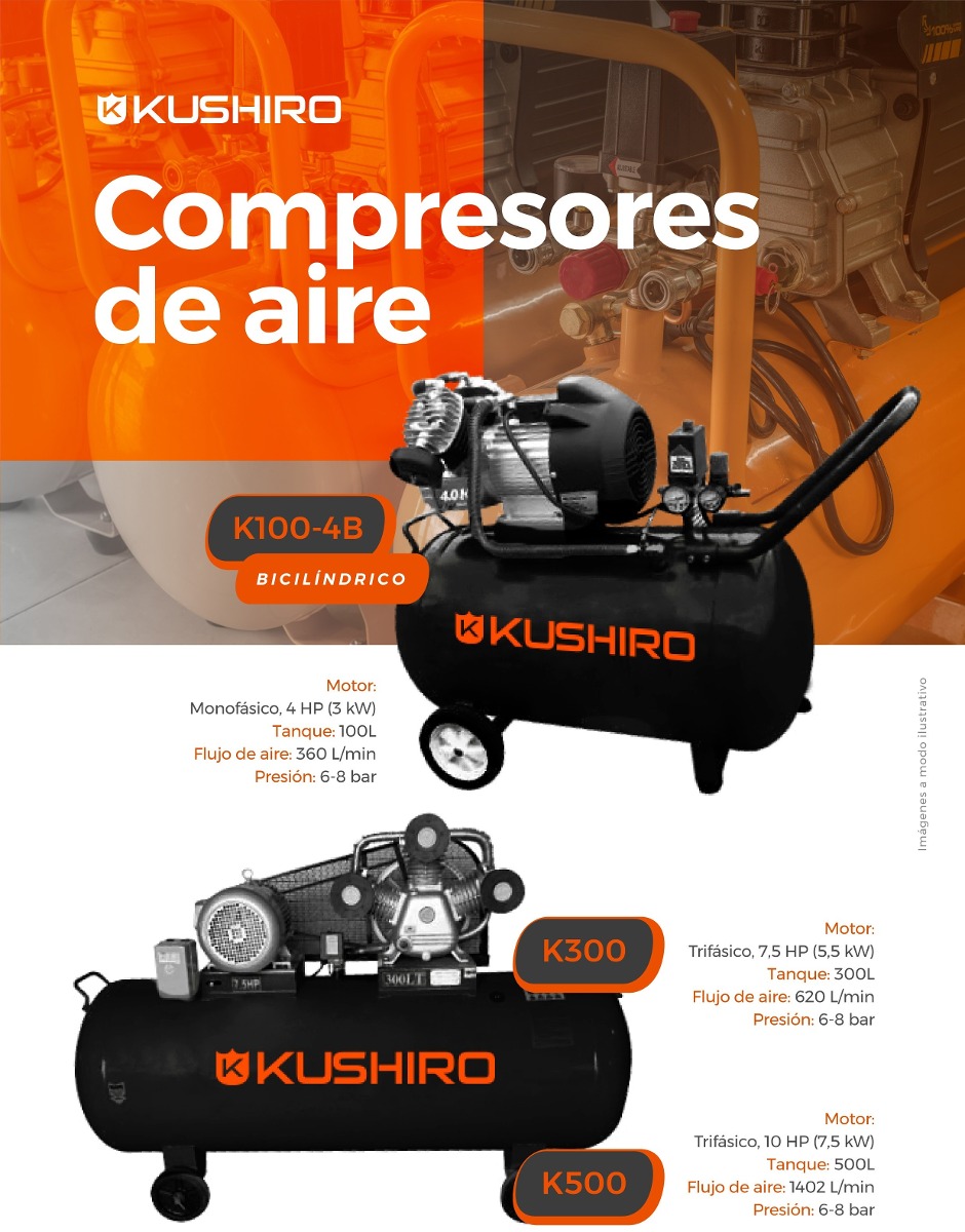 Compresor de aire Kushiro 300L 7,5HP Trifasico Trifásico
