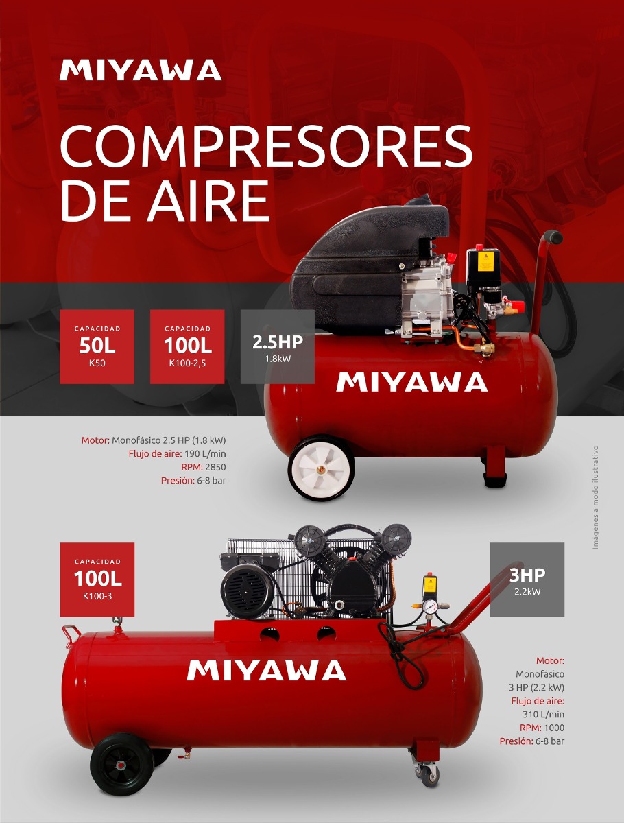 Compresor de aire Miyawa 50L 2,5HP Monofásico