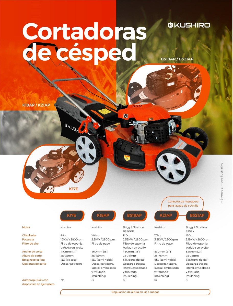 Cortadora Césped Autopropulsada KUSHIRO 21” 4en1 MOTOR BRIGG
