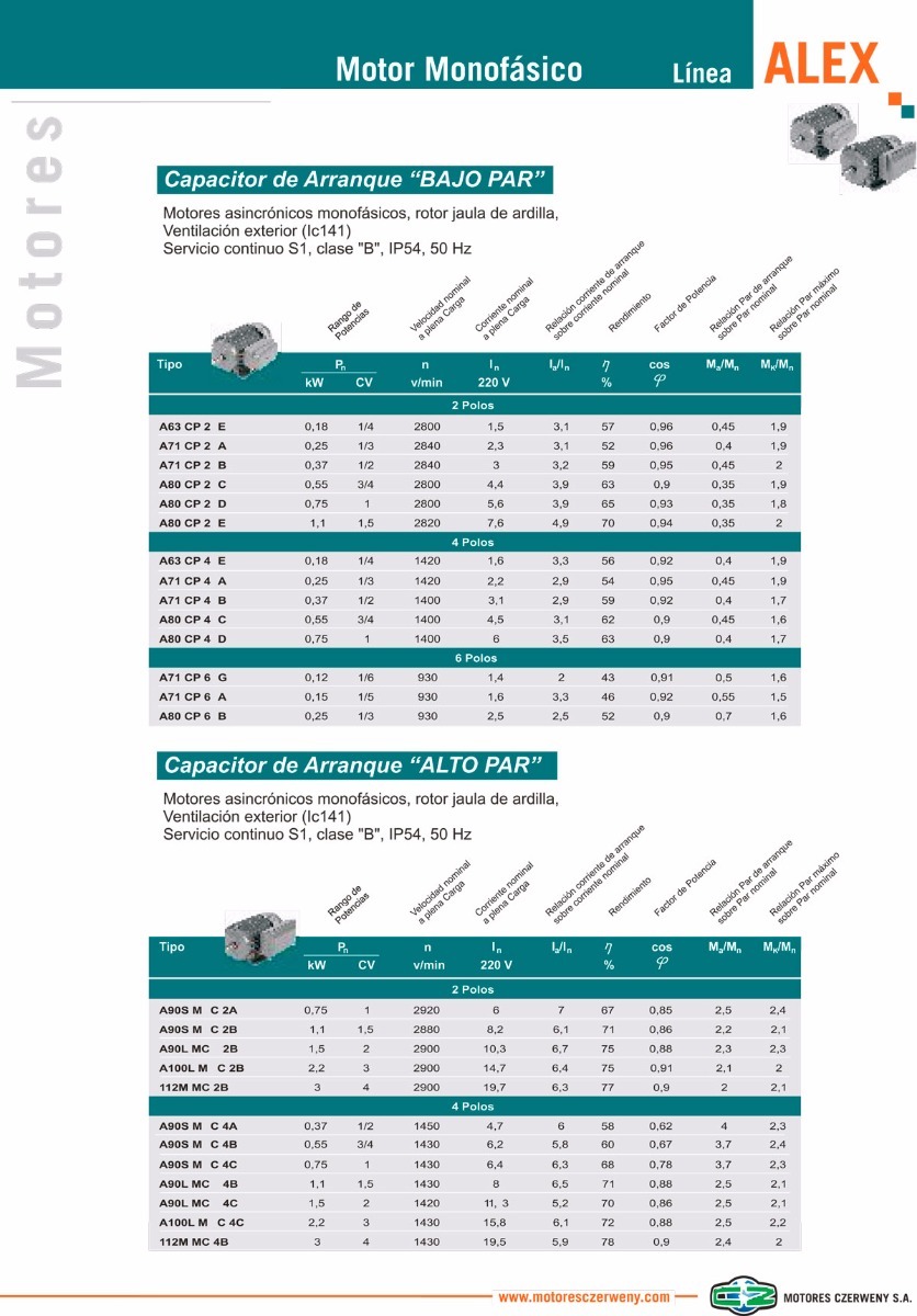 Motores Eléctricos Monofásicos Blindados Línea Alex