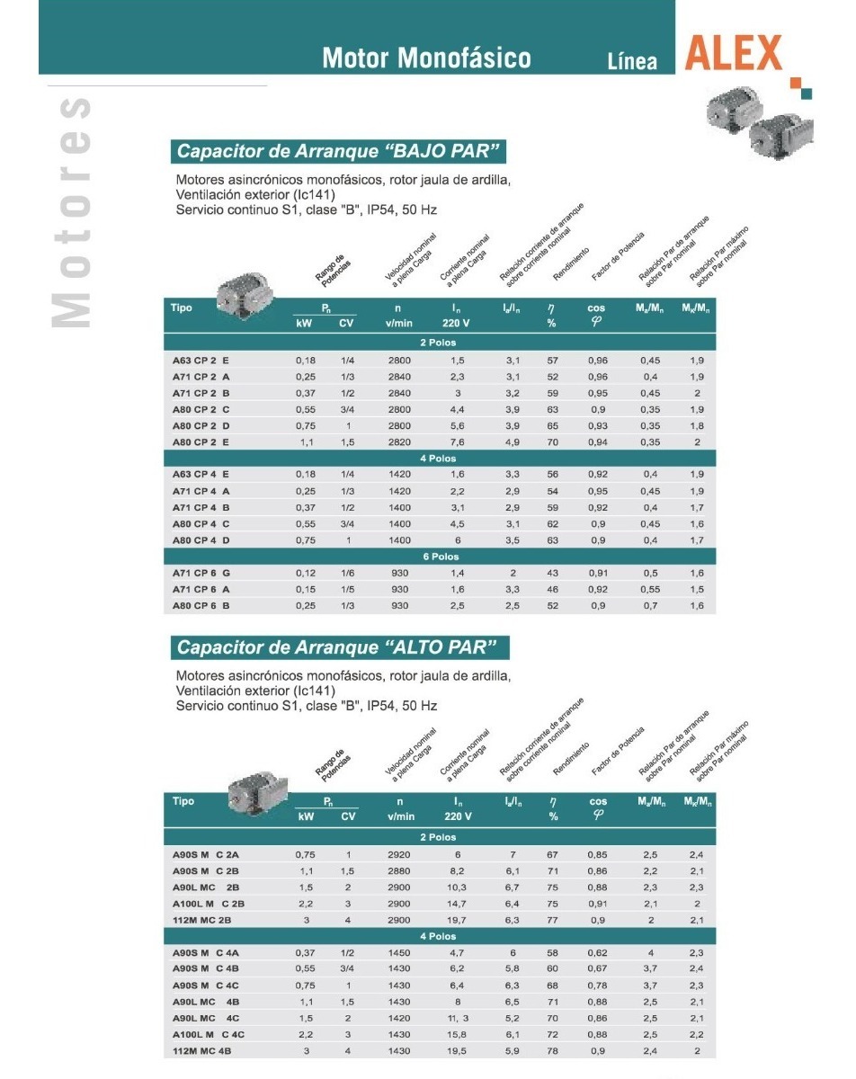 Motores Eléctricos Monofásicos Blindados Línea Alex